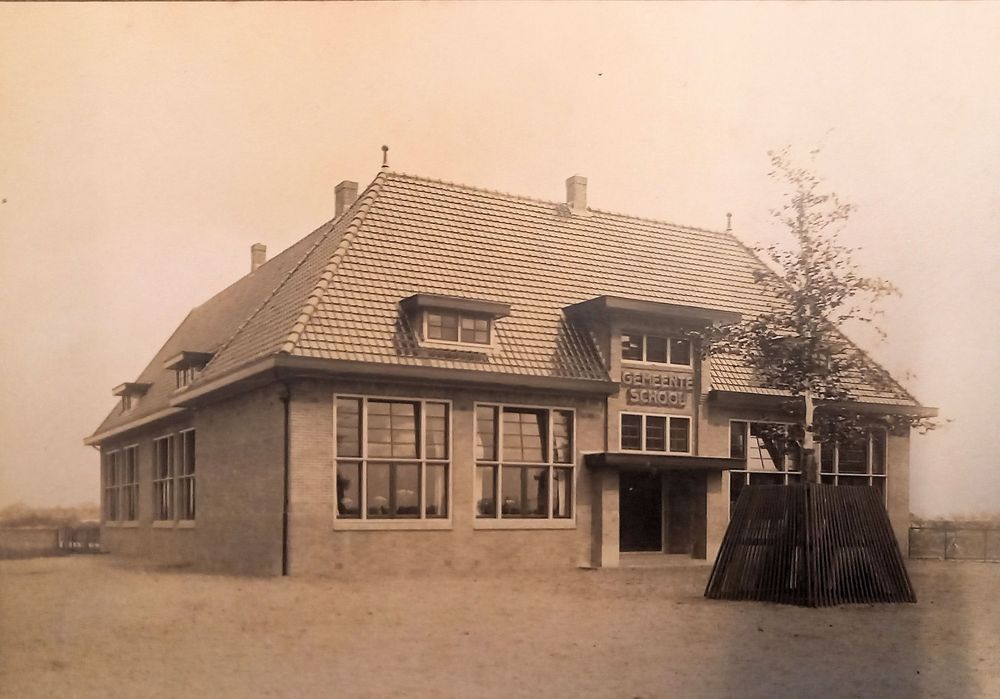 De gemeenteschool (later Floraschool) in oorspronkelijke vorm.