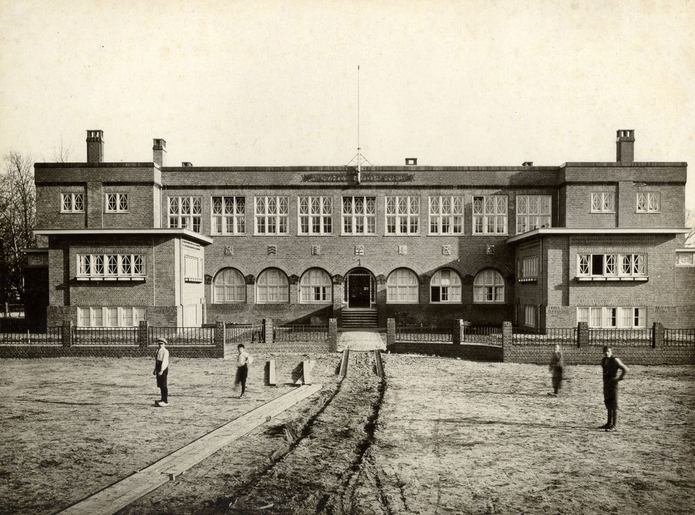 In 1922 betraden de eerste meisjes de meisjesvakschool in Zutphen. Zij kregen hier les in koken, huishoudkunde, strijken, wassen, tekenen en handwerken. Het markante schoolgebouw met kenmerkende boogramen is een ontwerp van architect J.H.W. Leliman. Aan de wapens boven de entree is af te lezen dat de school een regiofunctie had. Je ziet hier de wapens van Nederland, Voorst, Gorssel, Zutphen, Warnsveld, Brummen en Gelderland. In de jaren ’60 is de school verder uitgebreid.
