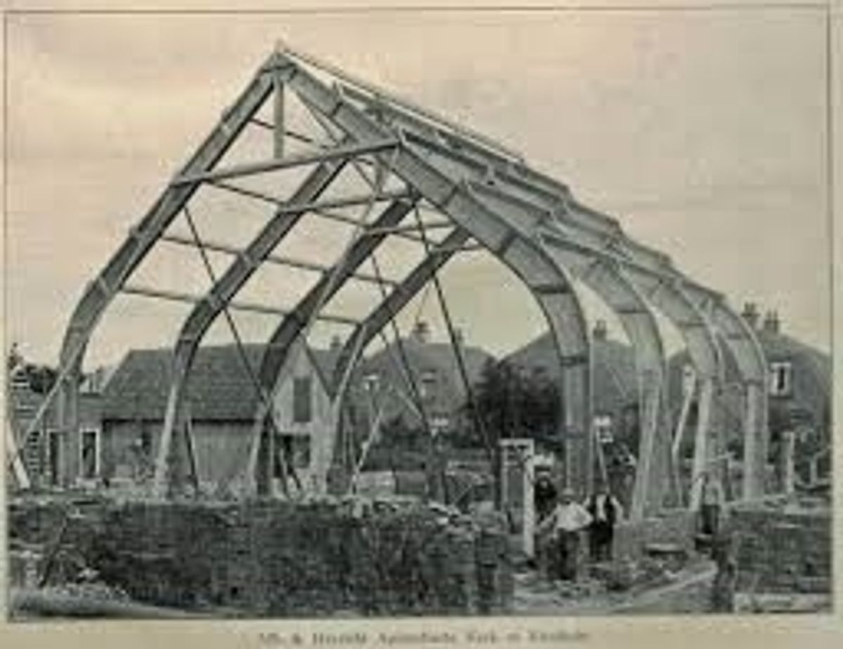 Al eerder, in 1907 werden in Duitsland gelijmde spanten gemaakt door Karl Friedrich Otto Hetzer. Hij was op het idee gekomen om een balk in het hart door te zagen en delen omgekeerd weer aan elkaar te bevestigen. Het sterkste kernhout kwam in de zwaarst belaste zones. De delen waren aan elkaar gelijmd met caseïnelijm. Voordeel van deze constructie is dat de gemetselde buitenmuren niet meer belast worden, zodat geen ruimte nemende steunberen en dwarsbalken meer nodig zijn.