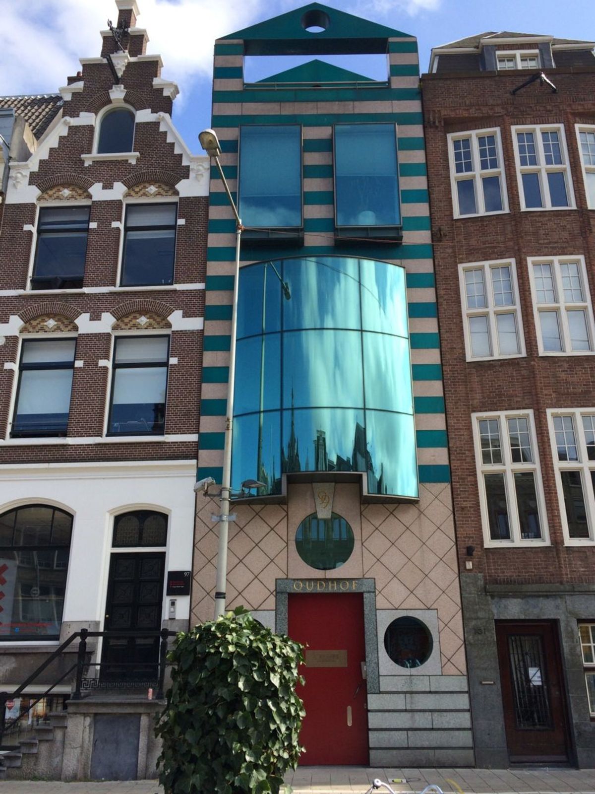 In het Oudhof effectenkantoor bevindt zich kantoorruimte en een woning. Het gebouw heeft een zeer opvallende, veelal postmodern genoemde gevel. Het pand behoort tot de bekendste werken van Mart van Schijndel. De architect kreeg hier van de opdrachtgever alle ruimte om zijn visie te