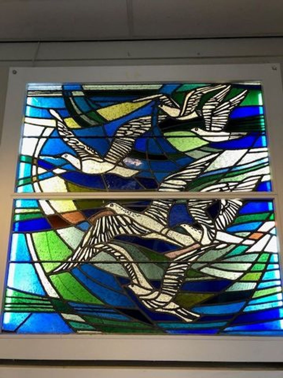 De Werkgroep Monumentale Kunst zoekt een nieuwe bestemming voor de 3 bijzondere naoorlogse glas-in-loodramen. De ramen zijn gratis beschikbaar voor herplaatsing in gemeente Gooise Meren. Ze kunnen bijvoorbeeld opgenomen worden in de hal of trappartij van een verzorgingshuis, gezondheidscentrum, appartementengebouw of school. De ramen zitten in een metalen frame en kunnen hiermee worden bevestigd op de muur. Voorwaarde is dat ze binnen worden geplaatst. De kosten voor herplaatsing zijn voor rekening van de nieuwe eigenaar. Afhankelijk van de plek is voor de herplaatsing fondsenwerving eventueel mogelijk.