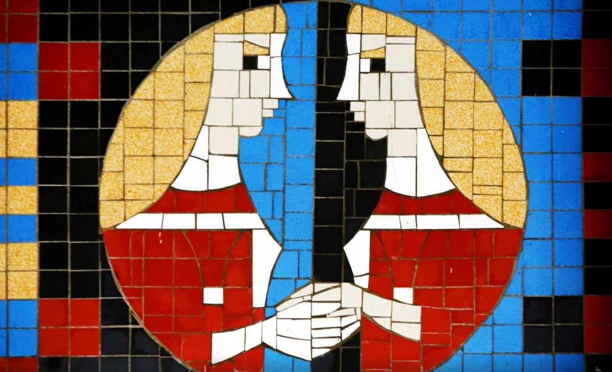Afbeelding van het mozaïek van sterrenbeeld Tweeling van kunstenaar Janus Nuiten © Ramon Mangold, artikel BNdeStem (Edine Wijnands) woensdag 13 januari 2021.